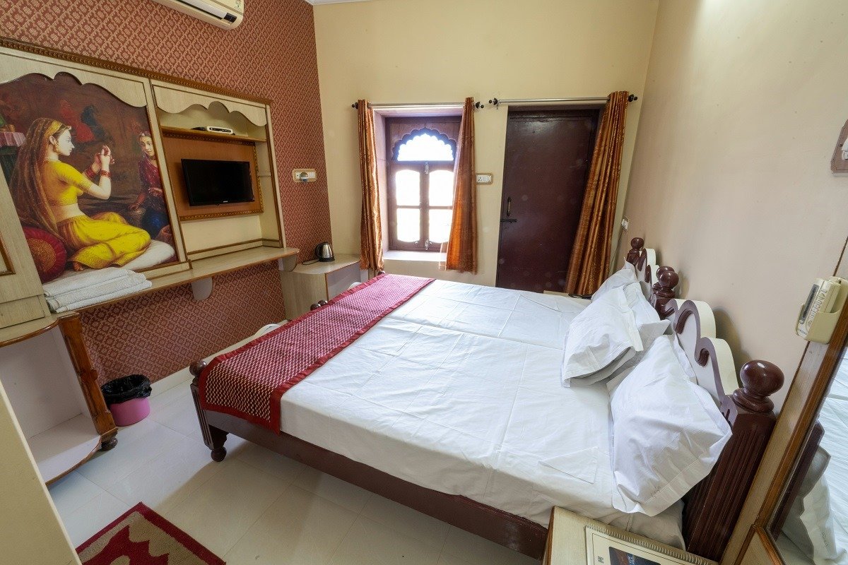 Jee Ri Haveli in Jodhpur offers family rooms with air-conditioning, private bathrooms, and modern amenities. Each room includes a balcony or terrace with scenic views, ensuring a pleasant stay. Guests can enjoy a sun terrace, restaurant, and bar. The on-site restaurant serves halal and vegetarian meals, complemented by a continental breakfast with juice and pancakes. Free WiFi is available throughout the property. Located 7 km from Jodhpur Airport, the hotel is near attractions such as Mehrangarh Fort (3 km) and Umaid Bhawan Palace Museum (4 km). Free on-site private parking.