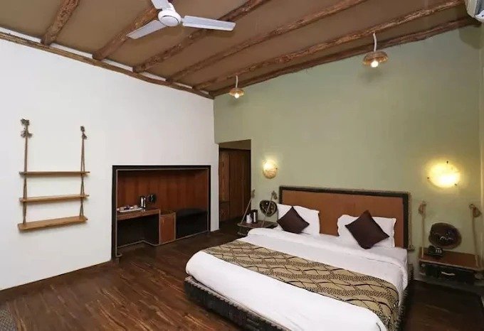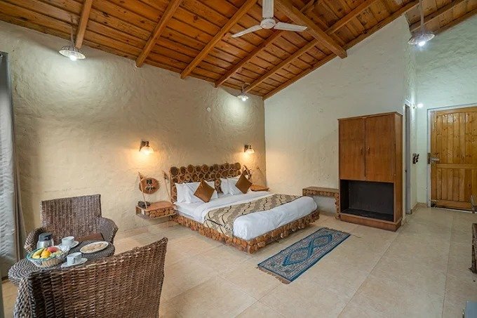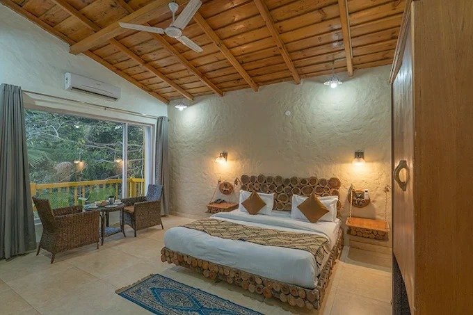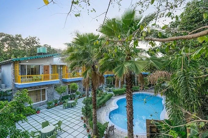 Le Reserve Resort Corbett is located in Dhikuli in Jim Corbett National Park. The resort is surrounded by lush green trees where the morning sunshine with the euphonious melodies of birds will enliven your mood. The resort is easy to access from the Railway and Roadway routes. The nearest airport is Pantnagar Airport located at a distance of 90.3 km away. Ramnagar Railway Station is 10.9 km away from the resort. Common amenities of all the rooms are a flat-screen TV with satellite channels, tea/coffee maker, wardrobe/luggage space, mini bar and separate dining space. Deluxe Cottage and Jungle Suite have cane furniture, and an independent balcony overlooks the courtyard and swimming pool. All the rooms are non-smoking, and the resort offers a separate smoking area on the premise. The resort has a total of 18 rooms wrapped in the charm of a wild forest. These rooms are divided into three categories including Jungle Cottage, Deluxe Cottage and Jungle Suit. Guests can enjoy stargazing, bird watching and jungle safari. They can also have fun in the swimming pool, relax and have a massage in the spa, stroll around the garden and enjoy the evening entertainment with barbeque and bonfire. Some of the popular nearby attractions are Jim Jungle Explorer Safari at 9.7 km away. Corbett Park Wildlife Safari at 1.7 km away from the property.