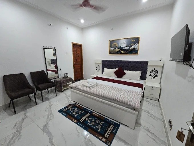 Shree Ram Sharnam Homestay, property located just 400 meter from the iconic Ram Mandir in Ayodhya. Designed to offer comfort, convenience, and a touch of elegance, this property is perfect for tourists and business travelers alike. Shree Ram Sharnam offers recently renovated homestay accommodation with family rooms. Each room features a private bathroom, air-conditioning, and a balcony with city views.